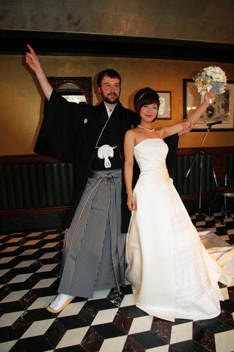 Jacob and Seri hamming it up at their wedding. |
